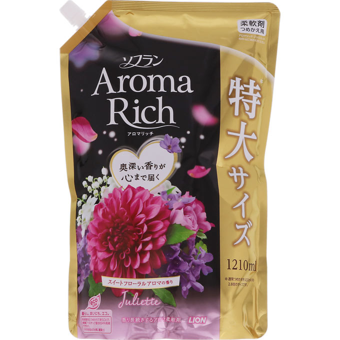 価格: 1,477円 レビュー評価:4.74 レビュー数:19 お店TOP>掃除・洗濯>柔軟剤>つめかえ用柔軟剤(液体)>ソフラン アロマリッチ ジュリエット スイートフローラルアロマの香り 詰替用特大 (1210mL*2コセット)★税抜2500円以上で送料無料(沖縄除く)★【ソフラン アロマリッチ ジュリエット スイートフローラルアロマの香り 詰替用特大の商品詳細】●奥深い香りが心まで届く、アロマ柔軟剤(詰替用)です。こだわりのアロマブレンド。いつもそばで、奥深いアロマが優しく香りつづけます。天然アロマオイル配合。植物生まれの柔軟成分がセンイの1本1本まで柔らかく仕上げ、静電気も防ぎます。月夜に恋人を待つロマンティックな気分をイメージした、スイートフローラルアロマの香り JuLiette(ジュリエット)【使用方法】●洗濯物量1.5kg(水量30L)に対して10mL<全自動洗濯機の場合>柔軟(仕上げ)剤自動投入口に本品を入れて洗濯する(すすぎ時に自動で (更新日時:2018/12/26 20:48) Supported by 楽天ウェブサービス |